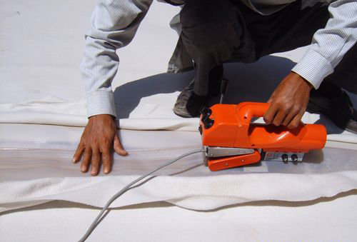 復合土工膜施工質量好壞直接關系到整個工程的成敗,因此,須嚴格按圖施工,嚴控施工質量,施工期應提交土工膜鋪設施工計劃,報監理。土建基層應清除基礎面一切可能損傷復合土工膜的帶尖棱硬物,填平坑凹,修復好坡面;壓實度控制在95%,墊層料經壓實后方可在其上鋪設復合土工膜;垂直深度2.50cm內不得有樹根、瓦礫、石子、混凝土顆粒等尖棱雜物。