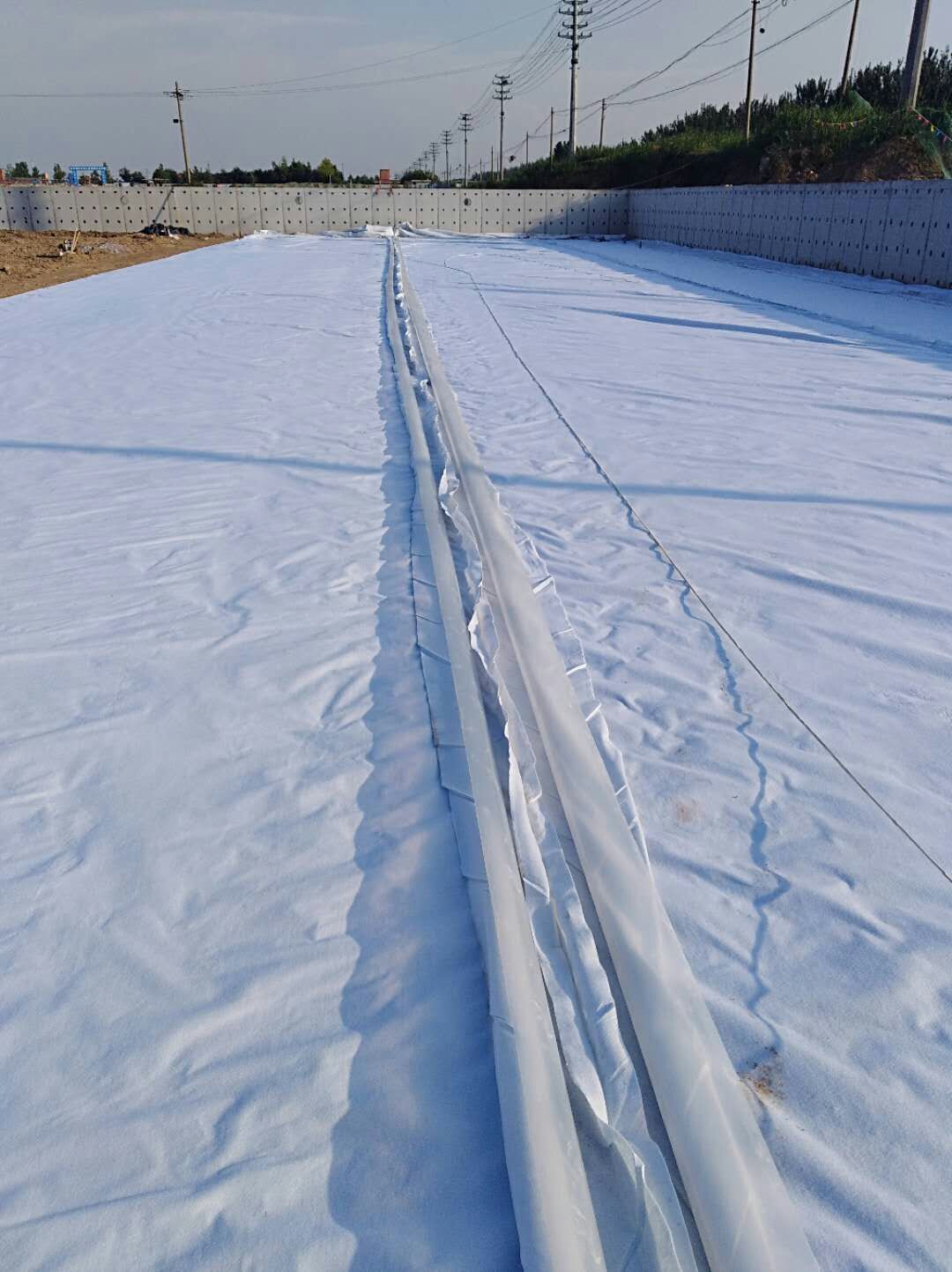 土工布作為土工膜的保護層,使保護防滲層不受損壞。為減少紫外線照射,增加抗老化性能,最好采用埋入法鋪設。